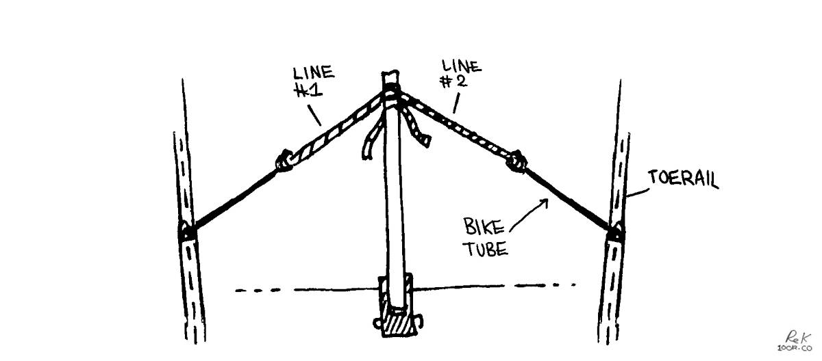 Note: Keep some old bike tubes, they are useful for self-steering a boat at sea (instead of using bungees). We used them a lot on long ocean passages because we didn't have a windvane, or an autopilot. See Thoughts, Tips and Tactics for Singlehanded Sailing by Andrew Evans(it's free) for more information on steering a boat with bungees (or bike tubes).