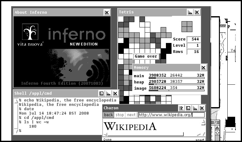 Plan 9 didn't run on a VM, but it inspired another system. The lessons that they learned during Plan 9 led to the building of something called Inferno, which runs on a VM.