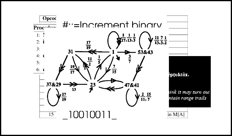 FRACTRAN was another OISC system. It has one operation: multiply. Its primitives were not bytes, or shorts, but fractions. It used prime encoding, which was one of the most beautiful mathematical concept that I knew of.