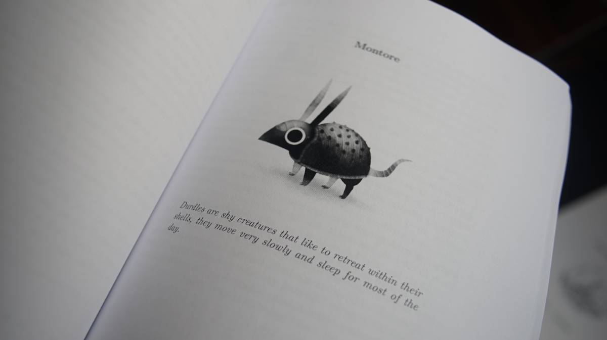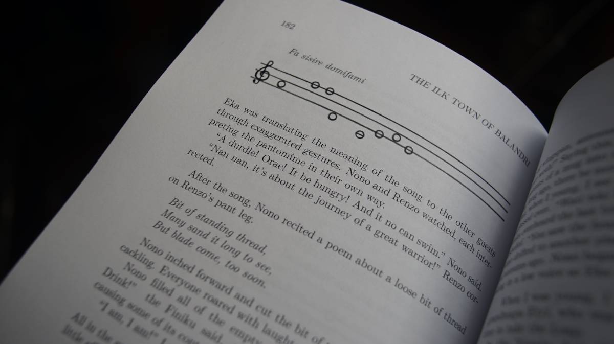Wiktopher follows the story of Lupen and Eka as they sandfin across the Soronan Desert and learn about the varied lives of its inhabitants. The book features illustrations of creatures, plants, maps and languages of the different cultures of its world. Themes include cultural identity, food preservation, community, low-tech and more.