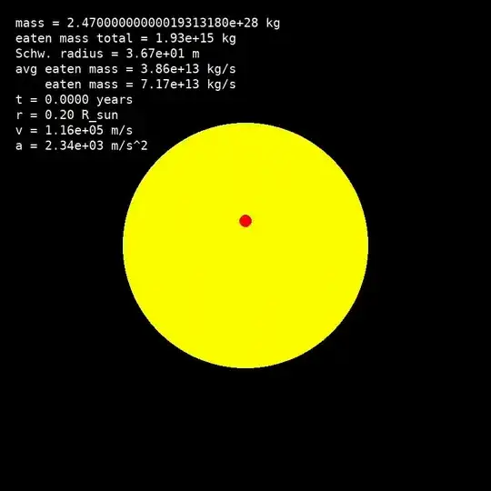 But you may have noticed that our $13M_{Jupiter}$ BH is already above 1% of Sun's mass (which Anders proposed as the point where we're getting close to explosion). So even for this already explosive BH that doesn't need to grow, if it was growing through movement, that would still be extremely slow. If we instead used a Jupyter mass BH, it would need to feed for about 150 mln years before it gets explosive.