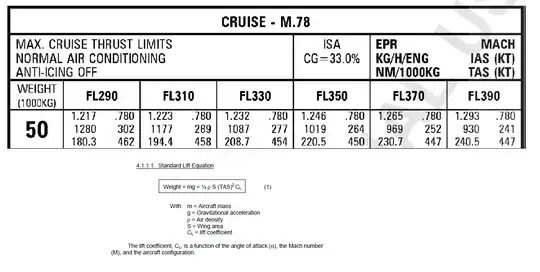 $C_L=\frac{2 m g}{\rho V^2 S}$