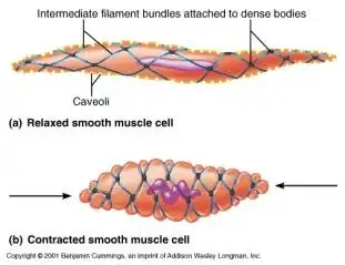 Smooth muscle filaments aren’t as organized as the ones in skeletal muscle. Therefore, the shortening can occur in all directions within the cell. It results in the shortening of the cell in more than 1 dimension.