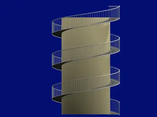 Use the Boolean modifier on the poles, naming the 'ducting' as the object. Experiment with all 3 options to see which cuts the poles so they form a spiraled guard-railing around the tower, albeit as yet, disconnected. ("union" did it for me)