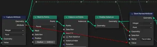 - "Corners of Face" needs to evaluate "Face Index" field, so again go backwards to Group Input…