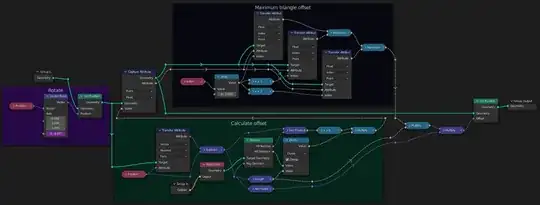 My problem is simple. A box travels on a chain of conveyors. To achieve the effect, we use a curve modifier, and instance the box on a plane traveling down the belt. The trouble is that the instancing plane will cut the top corner. If the instancer were tiny, the problem would happen at the first joint instead of the second. I want the instancing plane to scale down so that it doesn't cut the top corner, by using a proximity node. What's wrong with my node setup? Perhaps it complicates things that my instancer has a curve mod after the geo node mod.