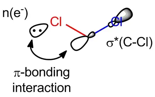 You may have wondered why it is that, while methyl chloride (chloromethane) is a reactive electrophile that takes part readily in substitution reactions, dichloromethane (DCM) is so unreactive that it can be used as a solvent in which substitution reactions of,other alkyl halides take place. You may think that this is a steric effect: Indeed, $\ce{Cl}$ is bigger than $\ce{H}$. But $\ce{CH2Cl2}$ is much less reactive as an electrophile than ethyl chloride or propyl chloride: there must be more to its unreactivity. And there is: Dichloromethane benefits from a sort of 'permanent anomeric effect.' One lone pair of each chlorine is always anti-periplanar to the other $\ce{C–Cl}$ bond so that there is always stabilization from this effect.