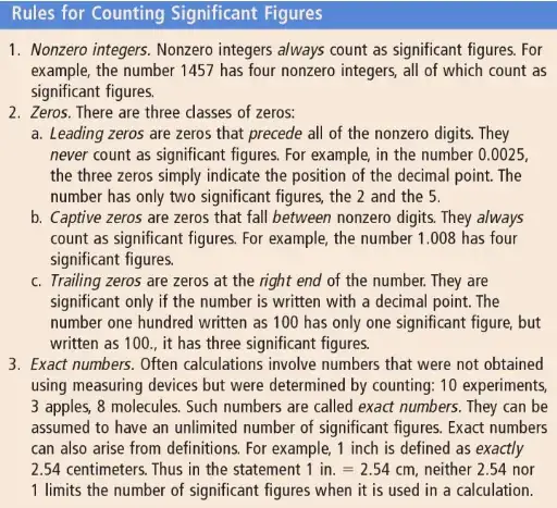 Referring to the above, rule it seems $(105-32)\times\frac{5}{9}=40.5555\ldots$ has infinitely many significant figures. Am I correct?