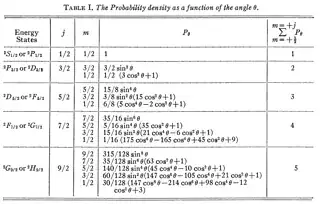 As an example of these two theorems the angular charge distributions for the magnetic states $m = \pm 3/2$ for a $^2P_{3/2}$ term are not only the same but are also identical with the two magnetic states $m = \pm 3/2$ of the $^2D_{3/2}$ term. It should be pointed out that the radial charge distributions of the $^2P$ and $^2D$ terms are different. [...]