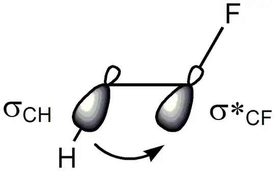 Now in $\ce{CH2F-CH2F}$, there will be two such interactions, but then there are also two such interactions in $\ce{CHF2-CHF2}$! There is a difference though. In the latter case, there are two fluorines on each carbon, which heavily draw electron density away from the carbon through the sigma bonds. This decreases the sigma bond density in the C-H bond, which being poor in electrons, gives relatively low stabilization when overlapping with the antibonding C-F MO. So $\ce{CHF2-CHF2}$ has a slightly higher bond length than $\ce{CH2F-CH2F}$.