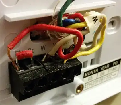 Now that the thermostat is working, you have lost the ability to control the fan. A little trick if you want to retain a way to control the fan without having to run a new 5-wire is to get a piece of 18/2 wire and run it into the control panel of the unit. Attach one wire to R and one wire to G. Attach a switch box to the side of the unit and run the wire into it. Connect the 2 wire to any light switch and mount it into the switch box. Throw your switch cover plate over it, and you have yourself a home made, manual fan switch that you can activate by going to the unit.