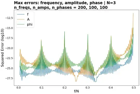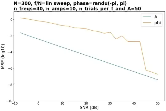When I use num=10*f, I get perfect results for both phase and amplitude. However, if I use num=10*f+1, the phase I get is completely wrong. I have tried using a window (in particular, a flat top window since it preserves amplitude) and I get the same thing: unless I control the number of samples to be an integer multiple (actually, 10.2, 10.4, 10.6, and 10.8*f also give good results for some reason) of the signal frequency, I get garbage back.