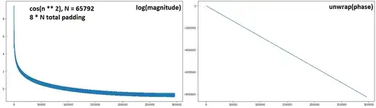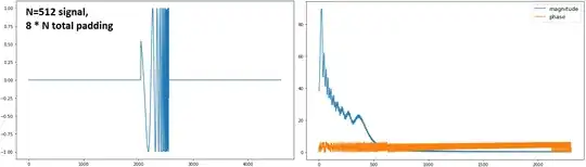 – Envidia Sep 03 '20 at 03:15tau=0.4with8*Npadding - the width of the positive flat region doesn't budge. The limit is clearly a square wave here, not a flat line. I further discovered that one can obtain the phase/magnitude you've shown with a real chirp; the only difference is in how we definedt. I'll look closer - and thanks for the references. – OverLordGoldDragon Sep 03 '20 at 03:19bandWidthandFsimmensely affect phase & magnitude. I found that settingFs = 2 * bandWidthdoes yield a flat line in the limit - but this is strange; shouldn'tFs >> bandWidthbe more accurate? Yet that yields a square of ever-diminishing width, maybe even an impulse in the limit. E.g. comparebandWidth=1e6 / 2withbandWidth=1e4, forFs=1e6,tau=1.bandWidth=1e7bombs entirely, guess per aliasing. – OverLordGoldDragon Sep 03 '20 at 03:40=1from 0 to 0.5 of sampling frequency, meaning for allf. Found your recommended textbook, somehow the exact chapter needed: pg 170-175. It shows the limit as a square. You mentioned "zooms to the portion where the chirp exists in FD" - meaning what, exactly? How would one modify a chirp in time domain to yield a flat line for allf? – OverLordGoldDragon Sep 03 '20 at 04:11