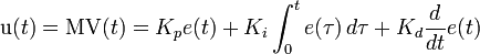 Here we have the basic formula of a Proportional Integral Derivative controller. This is the formula from the Wikipedia page on the subject