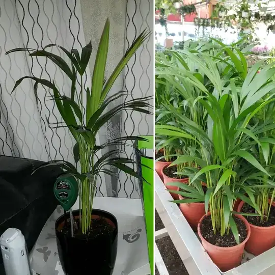 What is happening to my Areca Palm? Here are two pictures. The right one is of my Areca Palm before I bought it from the shop and the left image is how it looks now.