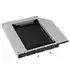 • Remove the plastic positioner from the optical bay hard drive enclosure by pressing in on one of the clips on either side and lifting it up and out of the enclosure.