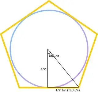 So a whole side is of length $2\cdot \left(\frac{1}{2}\tan{\frac{180^\circ}{n}}\right)$