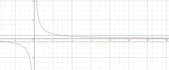The horizontal lines in the picture are $y = \pm \dfrac 12$. As you can see, after $P = 3$ on the $x$ axis, the values of $f(x)$ are contained on the interval $\left(-\dfrac 12, \dfrac 12 \right)$ on the $y$ axis. In informal terms, the rigorous definition of $\lim_{x \to \infty} \dfrac 1x = 0$ is simply the assertion that that you can do exactly what I did above for any horizontal lines $y = \pm \epsilon$, no matter what (positive) $\epsilon$ you pick. That is, for any positive number $\epsilon$, you can always find some point $P$ somewhere on the $x$ axis such that for every $x$ larger than $P$, its $f(x)$ value is on the interval $(-\epsilon, \epsilon)$.