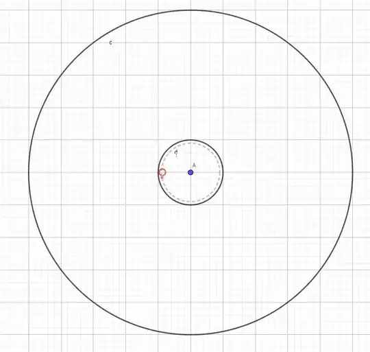 Since that coin has a radius of 1cm, I have plotted another circle with a radius of 9.