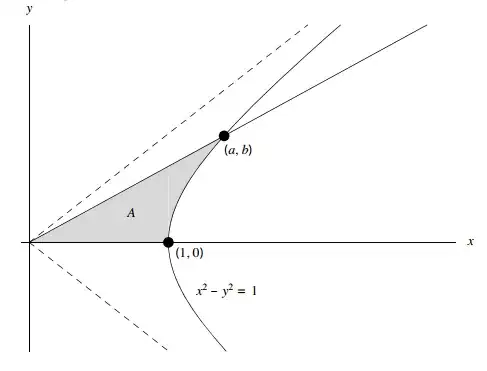 I'm trying to derive the definitions of hyperbolic functions with this image in mind, where $a := \cosh u$, $b := \sinh u$, and $u = 2A$.