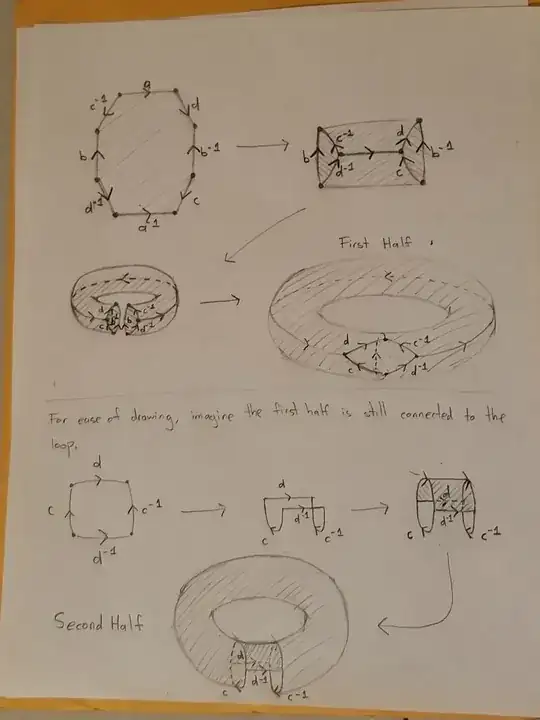 Now, this construction is intrinsically different from the one linked in the video. The $cd^{-1}c^{-1}d$ path in the image is a loop the is homologous to zero, yet not null-homotopic. This is not true for the two pairs of opposite sides in the video.