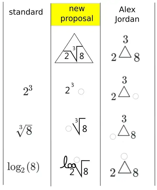 In other words, there is existing notation which already unifies the various notation of exponentiation, roots, and logarithms. It isn't necessarily "pretty", and it isn't appropriate for elementary students, but it already exists.