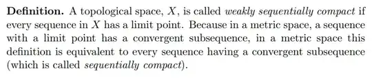 Reading both definitions I can see the difference between weakly sequentially compact and sequentially compact, but I can't find an example of a topological space which is weakly sequentially compact but not sequentially compact or at least one space where we have a sequence with at least one limit point but which doesn't have any convergent subsequence.
