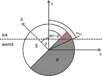 I got this problem and solution in a paper but cannot find how they have solved it. Consider I have a sphere that is equally divided into two different patch(P, S). The sphere can rotate and translate(up-down) at the air-water interface. The angle $\alpha$ defines the position of the sphere (alpha increase means the sphere goes towards the air). The angle $\beta$ defines the rotation of the sphere. So the surface area of any patch into any phase changes with the position and orientation(example: area of P inside air phase will change with $\alpha$ and $\beta$ angle). Now the calculation of the surface area of P part of the sphere in air is given by this equation. I understand the limit for $\theta$ direction but did not find out how the limit comes for $φ$ direction. Here is the visual representation of the problem