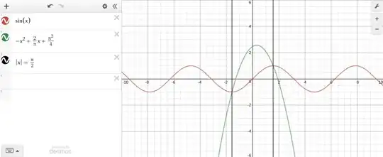 In Calculus class, we are all taught how to find the volume of a solid of rotation around any line of the form $y=a$ or $x=b$. Then in linear algebra, we are taught how to find the volume of a solid of rotation around a line of the form $y=mx$ by using the rotation matrix, $\begin{bmatrix} \cos (x) & -\sin (x)\\ \sin (x) & \cos (x) \end{bmatrix}$. But is it possible to find the volume of a solid that is rotated around a non-linear axis of rotation? For example, let's say that we are rotating the function $f(x) = -x^{2} + \frac{2}{\pi } x + \frac{\pi ^{2}}{4}$ around axis of rotation $g(x) = \sin (x)$. Notice that f(x) only intersects with g(x) at two points: $\left ( -\frac{\pi }{2},-1 \right )$ and $\left ( \frac{\pi }{2},1 \right )$. So we are only rotating f(x) around g(x) between those two intersections. I provide an image just to help with visualization. The red function is the axis of rotation, the green function is the function which we are rotating, and the black lines represent the bounds of rotation. My question is then, what is the volume of that solid of rotation? The only thing I found related to this was from this question,Solids of Revolution around other functions. , but the question was still left unanswered and this question is just a slight variant of that one.