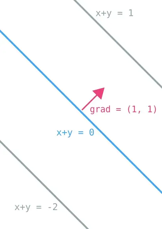 - our line is going to be perpendicular to the gradient, since our line does not want $x + y$ to change, while the gradient is the direction along with $x + y$ changes.