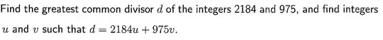 Since $39$ divides $234$ we stop and we get $\gcd(2184,975) = 39$ and, $(-4) \cdot 2184 + 9 \cdot 975 = 39$.