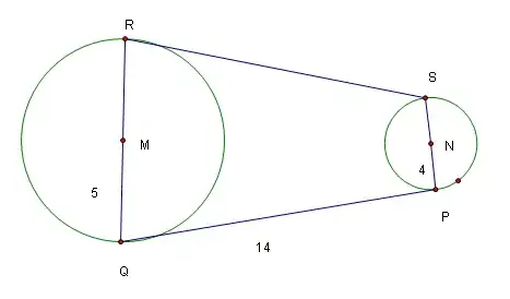 I'm sorry about this, yes, the diagram is misleading, I had to recreate the image in an annoying program. Yes, lines RS and line QP are both tangent to both circles. Sorry about that, I never explained the context of the question.