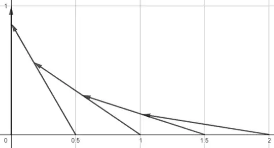 Since they all have the same length and are equally spaced it might be easier to look at it from a point-slope perspective. I obtained $(p_n,q_n)$ by finding the intercept between $y_{n-1}$ and $y=\sqrt{1-(x-nd)}$. Maybe there is also a nice representation for the angle at the bottom of the $n$-th tile (depending on $d$) but I wasn't able to find it.