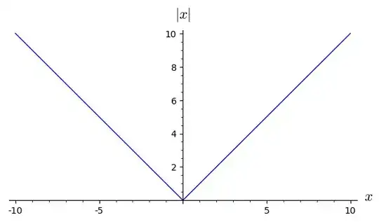 Here's what I mean, graphically. This is a plot of $y= \lvert x \rvert$,