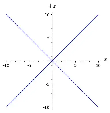 However I was going through my questions yesterday, when I realised, "Wait hold on, why is the equation $|x|=±x$ incorrect? Because "$±$" means "plus OR minus", you're not insisting that $|x|$ is $x$ AND $-x$. You're only saying it is either $x$ OR $-x$.