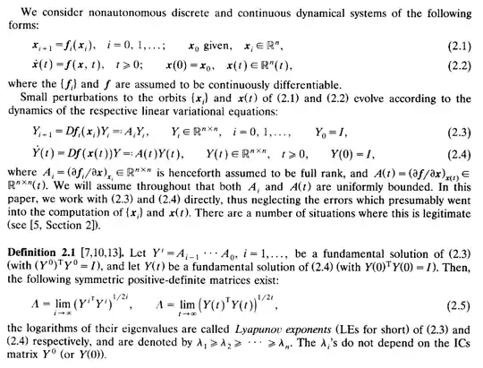 However, the excerpt of Soriano's paper, as well as Def 2.1 in Dieci, 1995 below seems to suggest that we use the Jacobian of f for defining LEs.