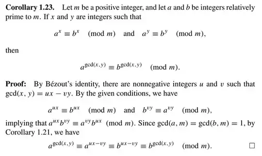 The point I'm having trouble understanding is how they declared there exist $(u,v) \geq0$ such that $\gcd(x,y)=ux-vy$. From my understanding of Bezout's identity, there exist countably infinite integer solutions to $ax+by=\gcd(x,y)$, but how exactly is a positive-negative pair guaranteed? For positive integers $(x,y)$, I understand why this has to true as their gcd has to be less than or equal to both of them, hence one of the coefficients needs to be negative. When $(x,y)$ are both negative, it's possible to just flip the signs of the solution pair of $a(-x)+b(-y)=\gcd(-x,-y)$ as $\gcd(x,y)=\gcd(-x,-y)$. The cases where either $x$ or $y$ is negative are the ones I can't seem to justify.