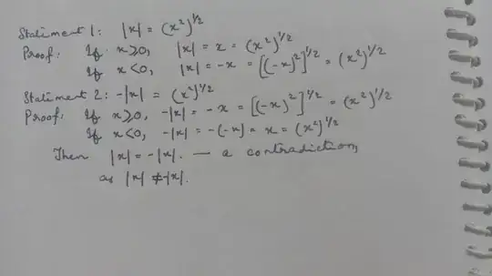 Statement 2 is wrong: $-\vert x \vert = -(x^2)^{1/2} \ne (x^2)^{1/2}$. – Therkel Apr 24 '23 at 07:24