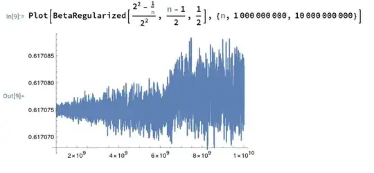 1Note that in the limit this is $2\Phi(-1/R)=2\Phi(-0.5)= 0.61707507745 $ where $\Phi$ is the standard normal cdf. You can get this by approximating some of the integrands with exponentials near the endpoints that matter as n gets large. – Eric Apr 29 '23 at 18:14