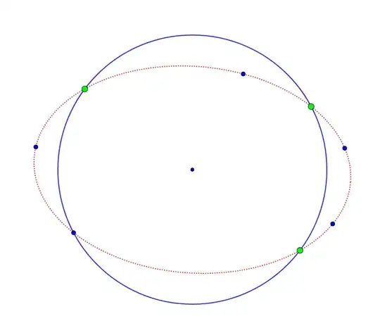 I am given: Five points on the ellipse, The sharing center of the ellipse and the circle, And the circle.