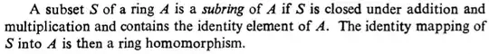 I think this definition is wrong, because nothing guarantees that the subring is closed to additive inverses.