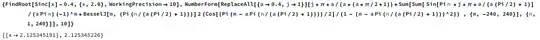 for given $x,c,b$. Note that Wolfram Cloud states “General::stop: Further output of General::munfl will be suppressed during this calculation” for large $n$, but is still numerically accurate. The series converges more slowly near extrema, but it usually converges a bit more quickly than $\sum_{n=1}^\infty\frac1{n^2}$, like in the above examples. Also, if $x<0$, then $j=2k+1$ and we choose “$+$” or if $x>0$, then $j=2k$ and choose we “$-$”, then the formula gives approximations to the corresponding roots. Lastly, Burniston and Siewert found an integral solution