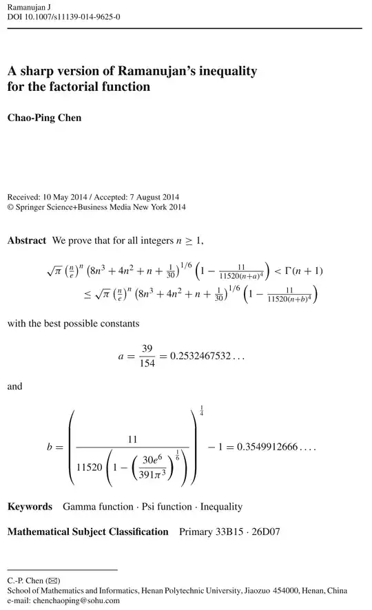 So let's state the altered version of Ramanujan's factorial approximation:
