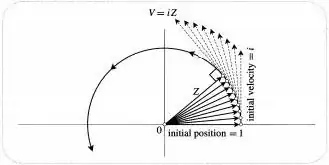Since we now know that $|Z(t)|$ remains equal to $1$ throughout the motion, it follows that the particle's speed $|V(t)|$ also remains equal to $1$. Thus after time $t=\theta$ the partial will have travelled a distance $\theta$ round the unit circle, and so the angle of $Z(\theta)=e^{i\theta}$ will be $\theta$. This is the geometric statement of Euler's formula.