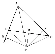 One well-known illustration of the logical fallacies to which Euclid's methods are vulnerable (or at least would be vulnerable if we didn't "cheat" by allowing ourselves to be guided by accurately drawn figures) is the "proof" that all triangles are isosceles. Given an arbitrary triangle ABC, draw the angle bisector of the interior angle at A, and draw the perpendicular bisector of segment BC at D, as shown below: