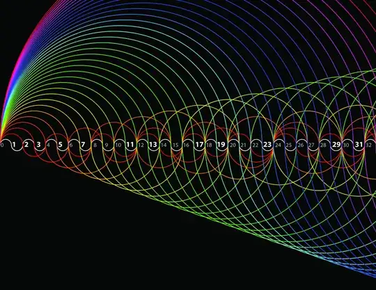 For each natural number $n$, we draw a periodic curve starting from the origin, intersecting the $x$-axis at $n$ and its multiples. The prime numbers are those that have been intersected by only two curves: the prime number itself and one.