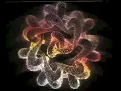 Ulam Spiral: all numbers from 1 to 100000; the more divisors a number has, the larger is the dot.