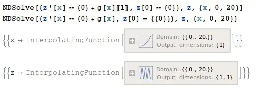 {a} + b == {a + b}, wherebis yourInterpolatingFunctionobject. IfListis not theHeadofb, thenPlus, beingListablewill absorb thatbintoList[a]. I'm betting there is probably no getting around this. – march Feb 03 '16 at 22:22{0} + g[x]will evaluate to{g[x]}beforeNDSolveexecute. I think you'll find this post interesting: http://mathematica.stackexchange.com/a/97006/1871 – xzczd Feb 07 '16 at 03:35