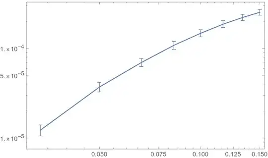 I have the following data consisting of x, y pairs and errors of y: