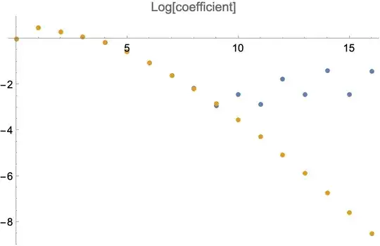 In this example, the maximum achievable precision is obtain with degree 11. One should expect the Taylor coefficients to increase after this point.